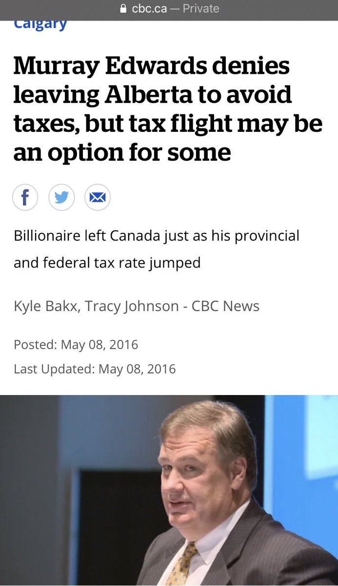This thread has been getting some attention today, so I’d like to point out that in 2016 Billionaire N. Murray Edwards denied that the reason he moved his official civic address to London, #England was to avoid paying taxes in #Canada.