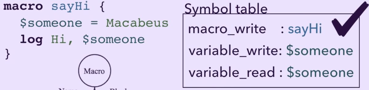 Para fazer essas análises usamos a AST para construir uma estrutura auxiliar chamada Symbol Table, da qual inserimos os identificadores escritos pelo código 6/9
