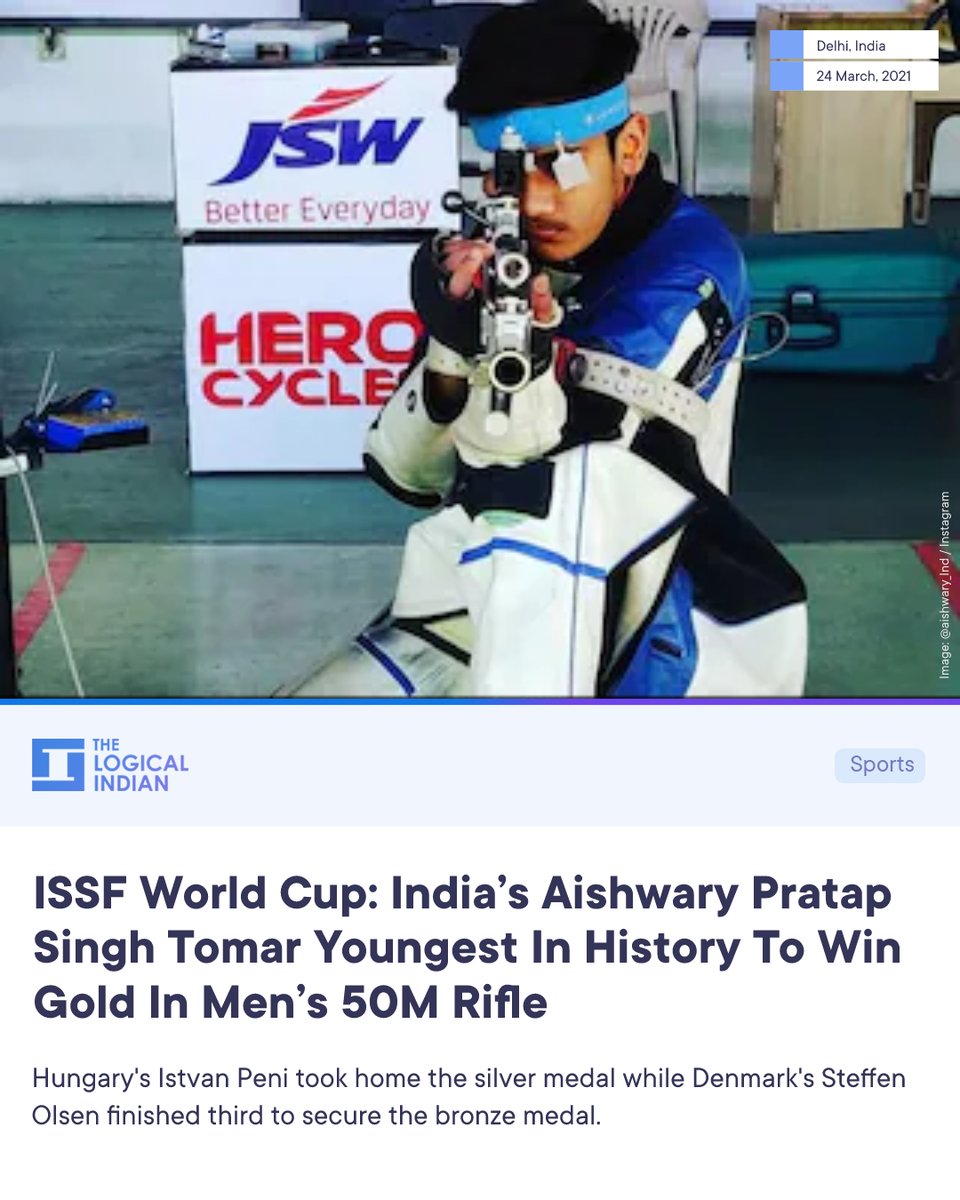 India’s Aishwary Pratap Singh Tomar bagged the gold medal in the men’s 50m rifle 3 positions event at the ISSF World Cup in New Delhi on March 24. The 20-year-old became the youngest in history to win a shooting World cup gold in the three 3 Positions event.
