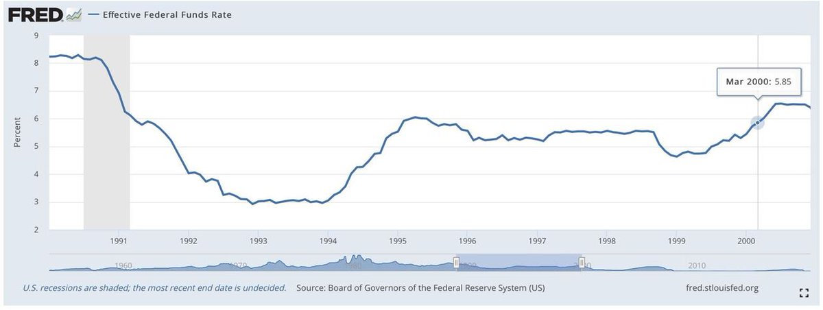 The dot-com bubble burst in 2000 after the US government raised rates six times between June 1999 and May 2000 up to almost 6%