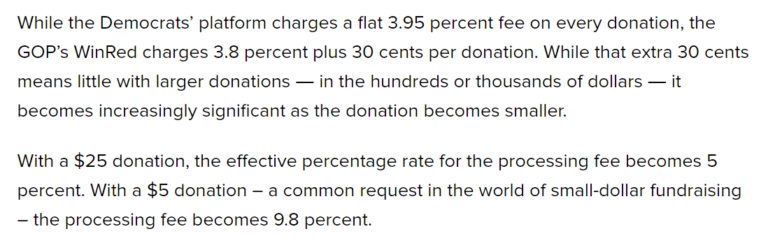 WinRed is a Trump platform. When they rolled it out, they tried to bully their competitor Anedot out of business, and the grift was already clear.