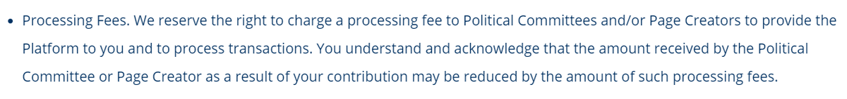 If you donate to Democrats, you've probably used ActBlue. I checked their terms & conditions and found basically nothing about fees at all.