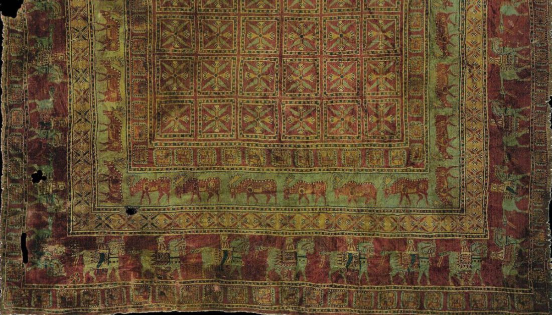 И из пазырыкских курганов был извлечен древнейший тканый ковер. Пазырыкский ковер является главной темой множества работ исследователей. Поскольку ковры в восточной культуре вещь знаковая, вопрос изготовления и оценки качества ковров изучен вдоль и поперек.