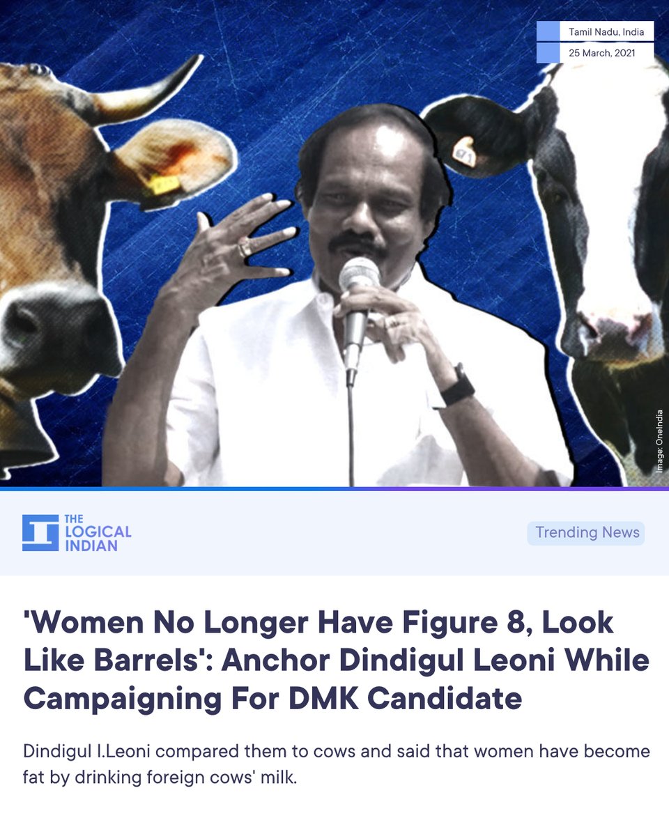 Anchor Dindigul I Leoni made insensitive comments against women while campaigning for DMK candidate Karthikeya Sivasenapathy in Coimbatore.