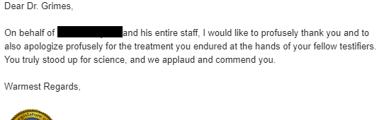 I'm last up - there's been so much ranting that I make a concerted effort to stay to time, pointing out scientific consensus, where misconceptions occur, and why. I also refute others claims, & point to the conspiracy narrative inherent in much of the testimony is telling 9/10