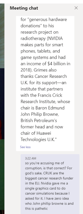The absolute best one was that they shared this MAD conspiracy theory in the chat: That because I got CRUK funding... I must be in cahoots with... some dude? Btw, the actual paper I thanked NVIDIA on is... one simulating cancer stuff (h/t @dbasanta) 14/n nature.com/articles/s4141…