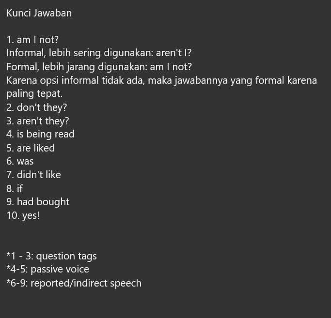 Kunci Jawaban (materi bisa cek thread di pinned tweet)