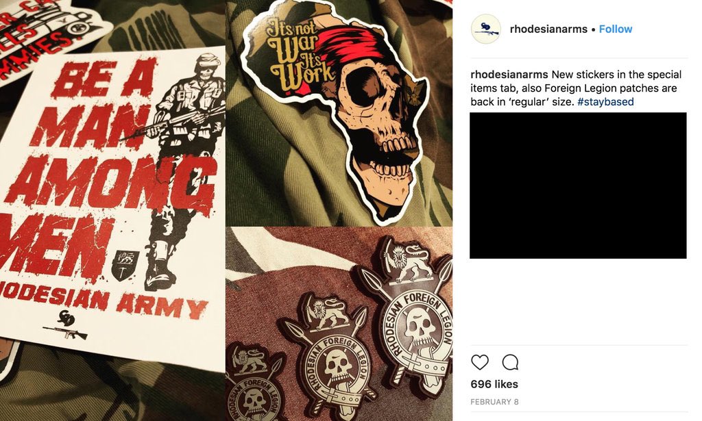 most notably there’s a whole cottage industry of tactical Rhodesian merch, with varying levels of emphasis laid on the white supremacy