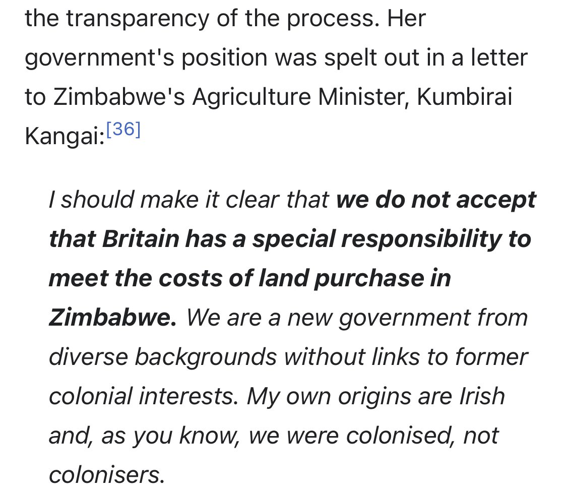 genuinely stunned to learn that a large part of the reason the Zimbabwean economy collapsed in the 2000s was Clare Short going ‘well the Irish were slaves too’