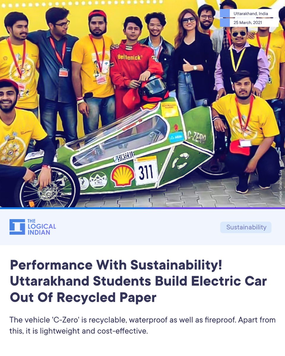 Students of the Graphic Era (Deemed to be University) in Uttarakhand have built an electric single-seater racing car's body with recycled paper. Using paper engineering principles, the students created the body with reprocessed Papier-mâché mixed with Plaster of Paris (PoP).