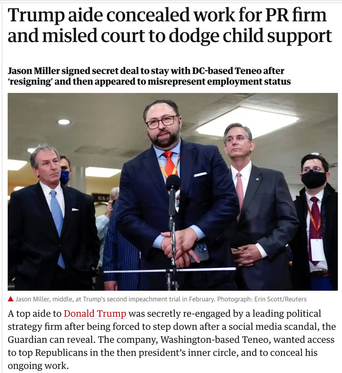 NEW: Trump aide @JasonMillerinDC signed a secret deal to stay with PR firm @Teneo after ‘resigning,’ and then appeared to misrepresent his employment status.
