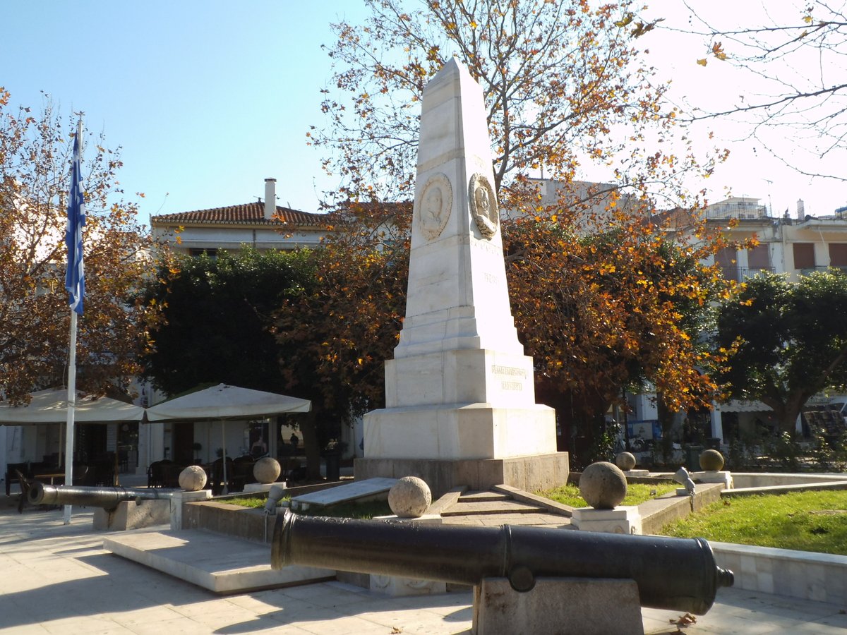 Toujours à Pylos, un autre monument commémore la bataille de Navarin et les trois amiraux commandant la flotte alliée : Edward Codrington (R-U), Henri de Rigny (France) et Lodewijk van Heiden (Russie).