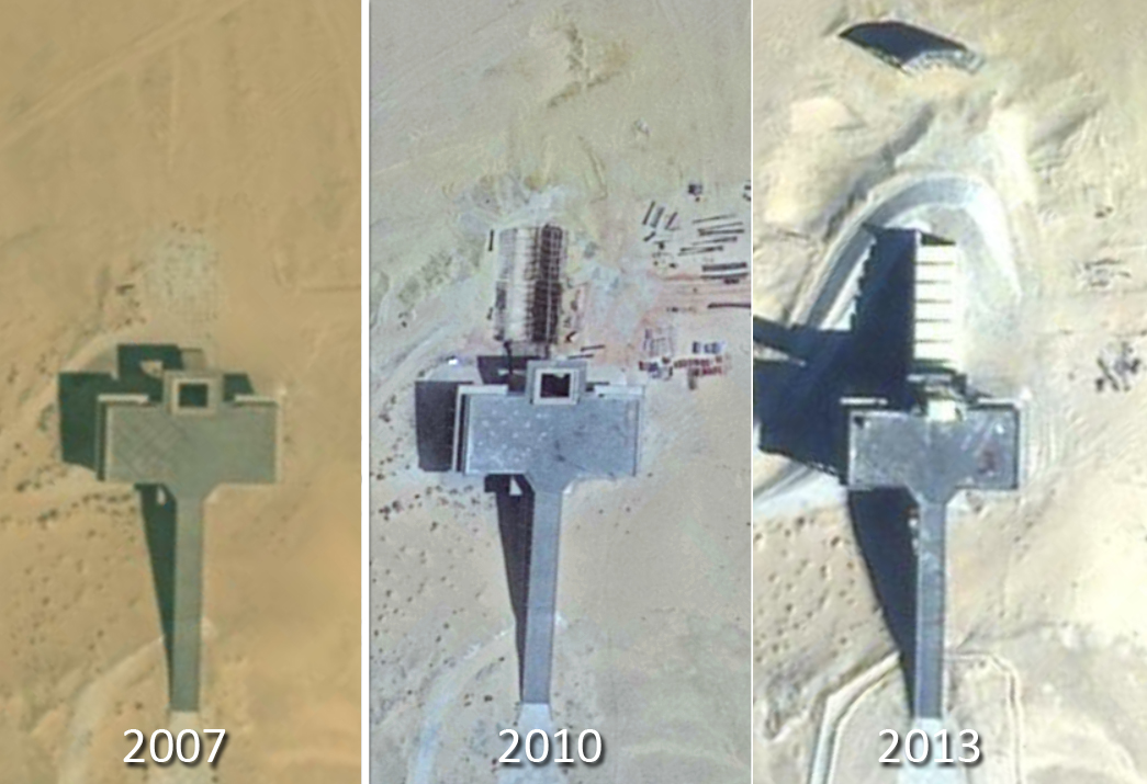 From 2007 to 2010, the Egyptians also built this mysterious structure at Jabal Hamza which might either be an avant-garde storage bunker design, a liquid-propellant motor test stand or an unfinished space launch pad.