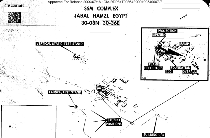 The Jabal Hamza test site goes back to the 1960s, when German engineers tried to develop an ambitious liquid-propellant missile arsenal for Nasser. The program eventually failed with the Germans and Egyptians unable to produce a working missile.