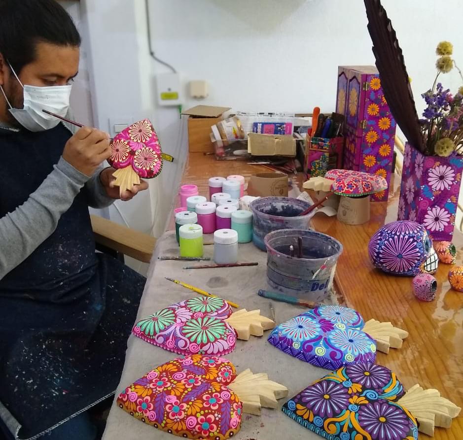 Taller familiar artesanal dedicado a la elaboración de piezas talladas y decoradas a mano en madera de copal .