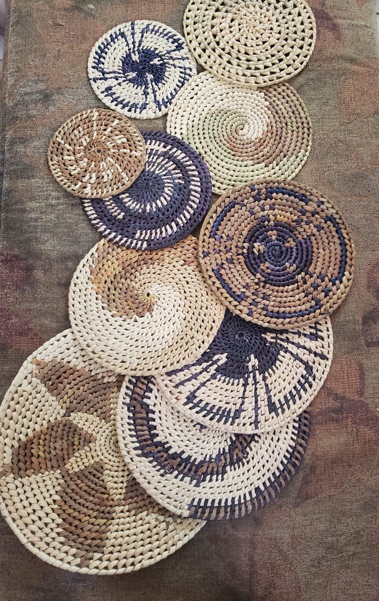 Elabora diferentes piezas con palma como tapetes , bolsas , cestos y decoración para pared. ♥️