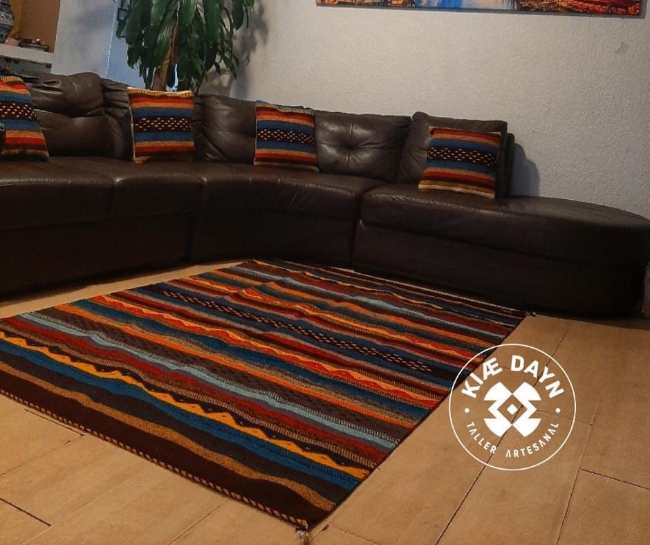 KIAE DAYN es un taller familiar zapoteca en Teotitlan Del Valle , elaboran tapetes , manteles , porta vasos y platos y caminos de mesa de lana y otras fibras naturales tejidos en telar de pedal ♥️