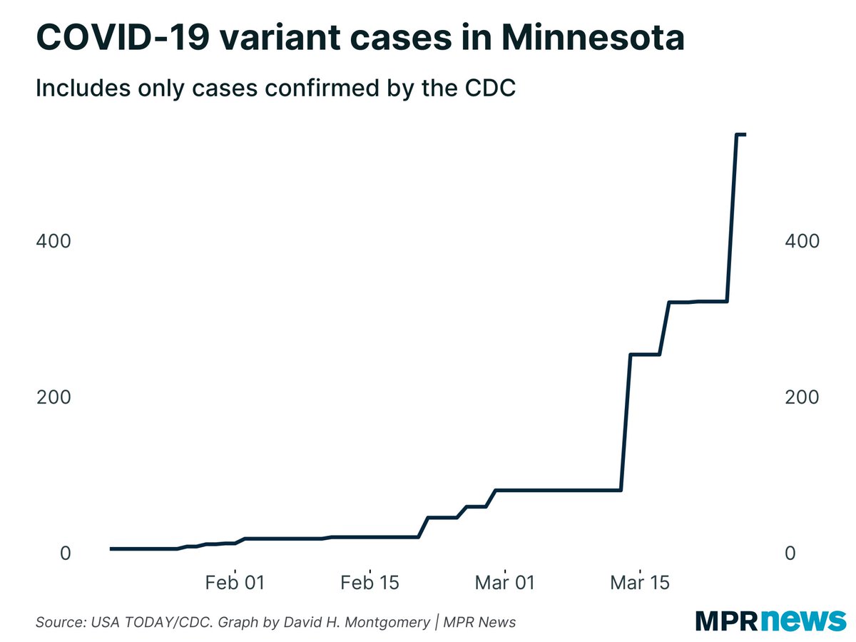 The number of variant #COVID19 cases identified in Minnesota continues to rise, but this is more anecdote than data — not all MN labs can distinguish the variants in their testing. We know the variants are spreading, probably very quickly, but don’t have good data.
