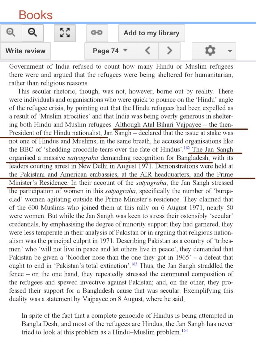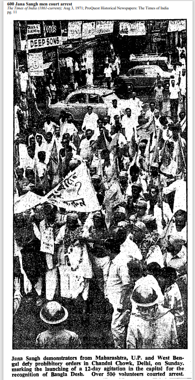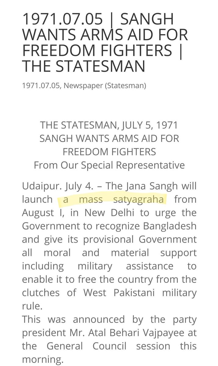 तब प्रकाशित हुए News पेपर्स और 'Antara Datta' की किताब 'The Great Exodus of 1971' में भी इस बात का जिक्र है की Jan Sangh' ने Bangladesh Liberation के लिए "सत्याग्रह' किया था।