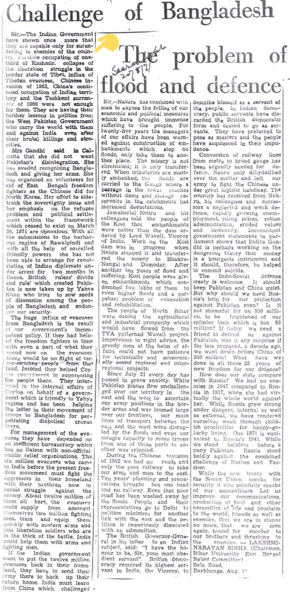 20-08-1971 को प्रकाशित हुई इस News के पहले 2 पैराग्राफ पढ़ेंगे तो स्पष्ट हो जाएगा कि Bangladesh Liberation के लिये "सत्याग्रह" की आवश्यकता क्यों हुई।