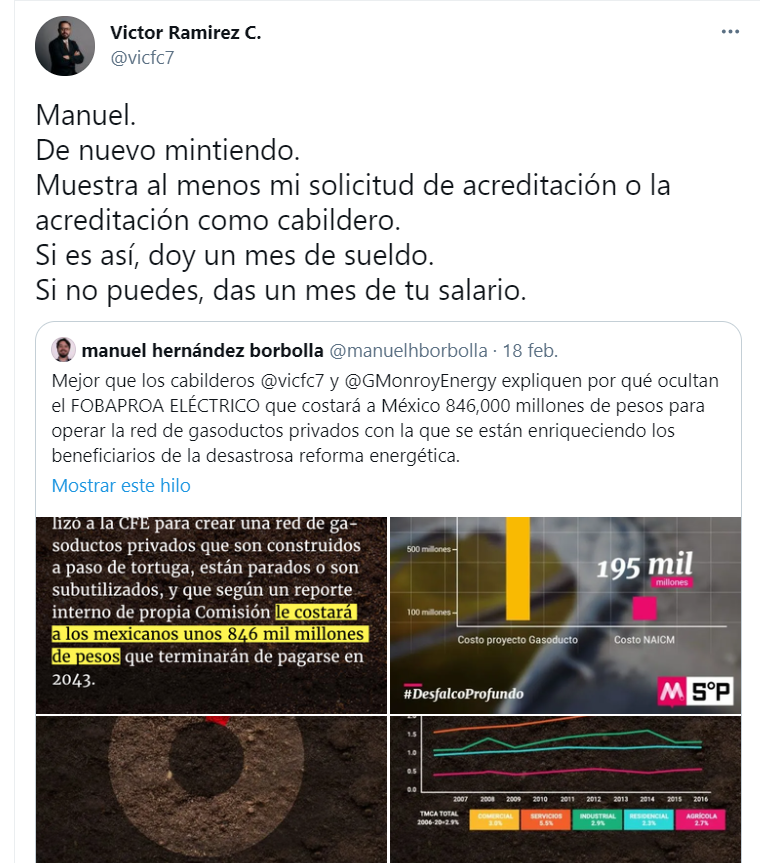 Me encanta cuando los "consultores" privados del sector energético me echan encima a sus fanatizados seguidores, quienes critican a un periodista por mostrar datos de la CFE sobre la disputa por la contrarreforma eléctrica. Señal de que están muy al tanto de lo que posteo.