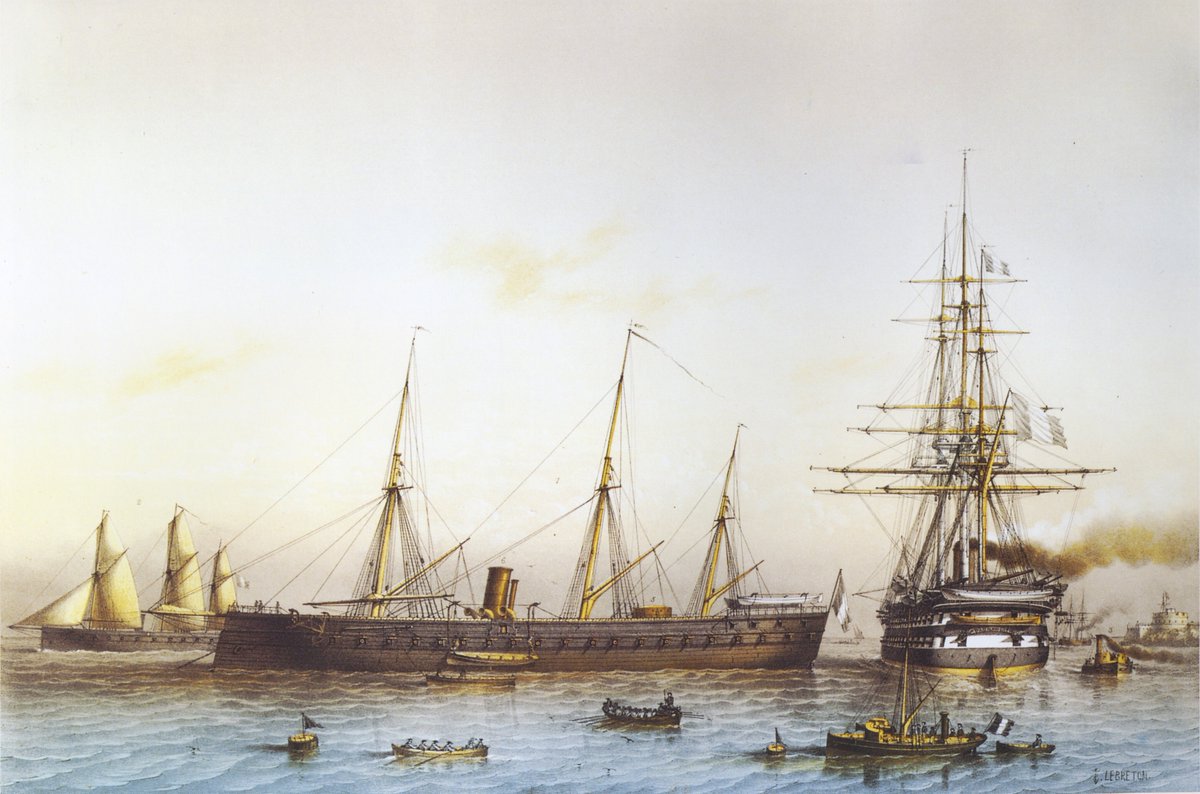En réponse, les Britanniques lancèrent en 1860 le HMS Warrior, à coque en fer. Le règne des cuirassés commençait, celui des vaisseaux était terminé ! #FIN