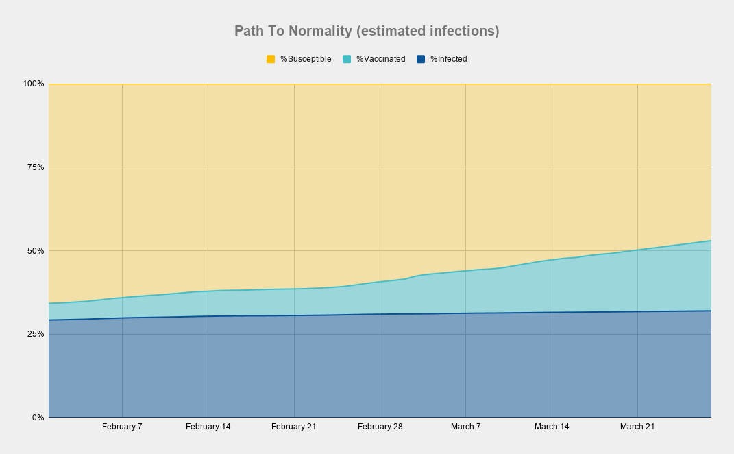 We're at 21% vax'd & 10% infected (minus those who've been both).