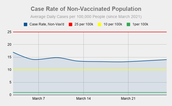 And when you start subtracting out vax'd ppl, the case rate among those who have not been vax'd is on the rise, up to 14.0 per 100k.