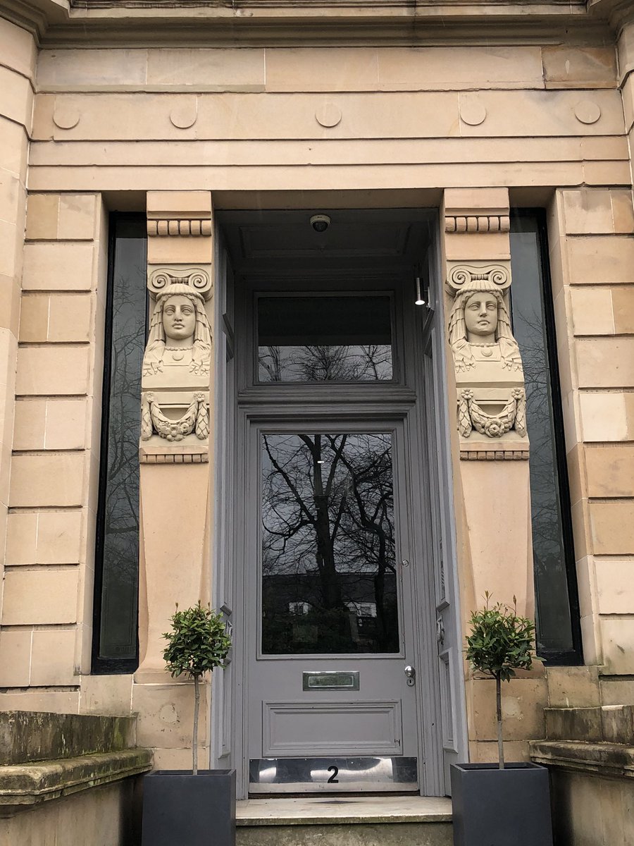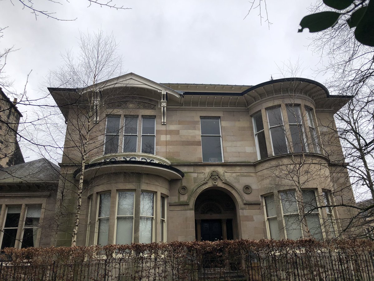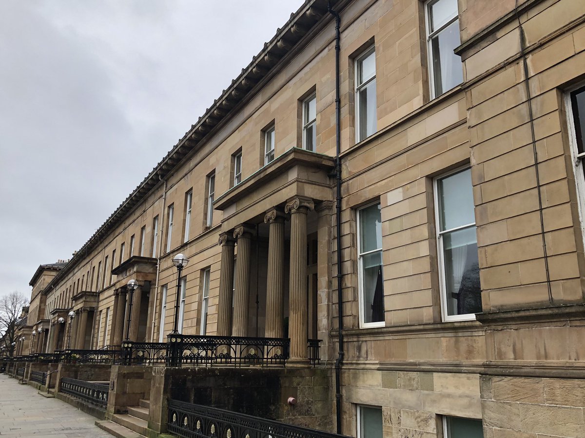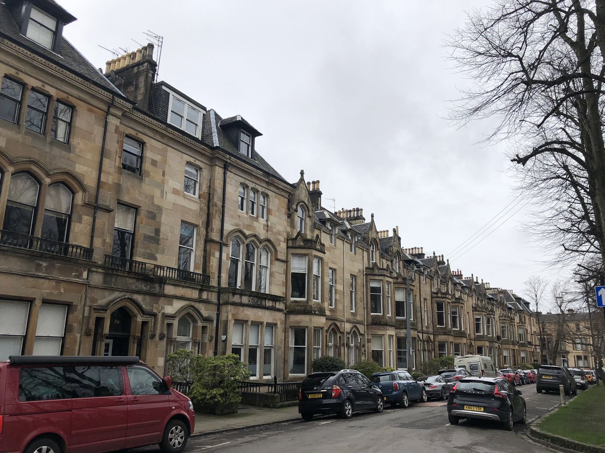 Gently Curving terrace at the east end of Westbourne Gardens, Kelvinside of c1879 which Pevsner thinks is based on a design by Alexander Thomson. Looks like it could be @AThomsonSociety /