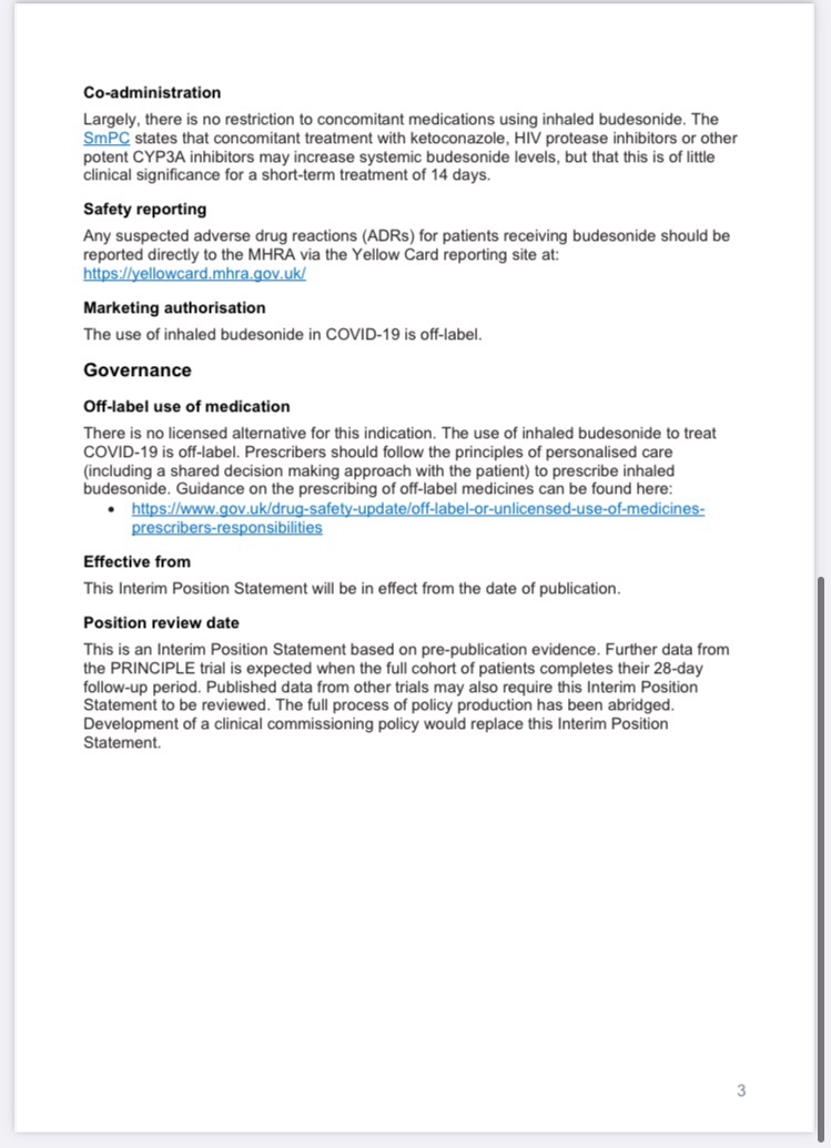 26/ Graças aos randomizados STOIC e PRINCIPLE (itens 8, 22 e 25) o NHS -- o "SUS do Reino Unido" -- autorizou o uso de budesonida inalada "precoce" (ou seja, desde os primeiros dias de sintomas) em pacientes de risco: