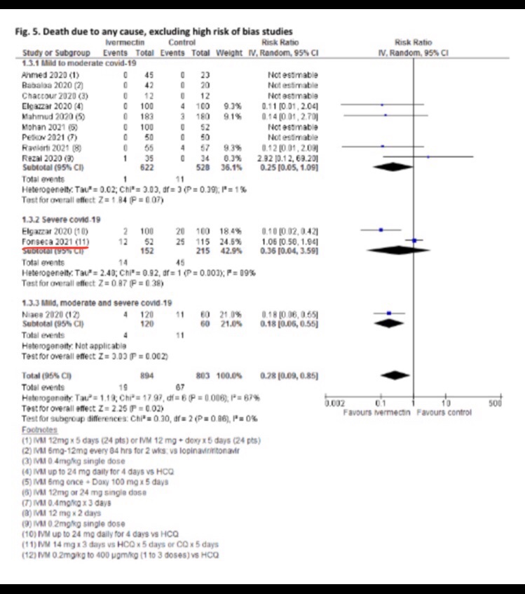 13/ Já postei a metanálise do grupo Bryant-Lawrie no item 6. Aqui a metanálise dos randomizados de ivermectina do Andrew Hill, que estima redução de mortalidade de 75%: