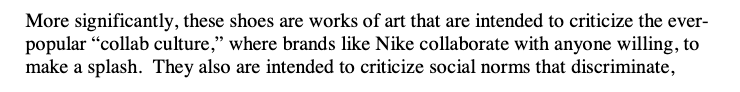 now the fun part. in addition to being museum-worthy works of art, #satanshoes are social criticism: of "the ever-popular 'collab culture,' where brands like nike collaborate with anyone willing, to make a splash..."