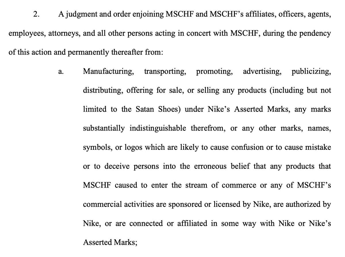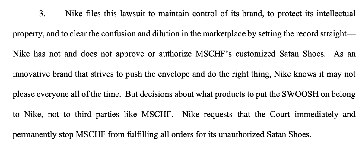 nike also wants MSCHF to escrow funds received from all orders so if nike wins the suit, MSCHF can refund any customers who ordered #satanshoes under the mistaken belief that nike was their source or approved or sponsored them.