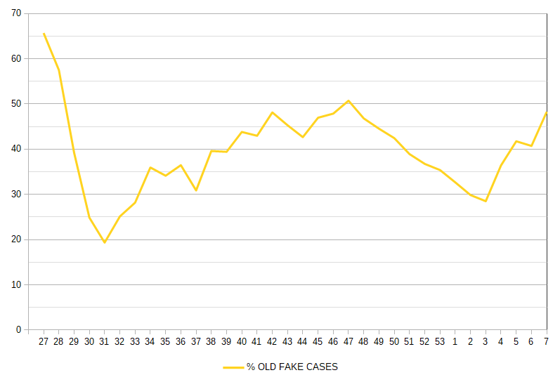 If we compare true active cases with old fake detection, we notice that around Xmas, CONCERNING Irresponsibles Guilt official Epidemic was 50% FAKE.