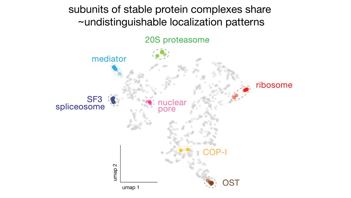 (6/8) We discover that localization signatures are remarkably predictive of protein function, and even contain enough information to identify molecular interactions. This is very interesting for the use of fluorescence microscopy for screening & functional genomics.