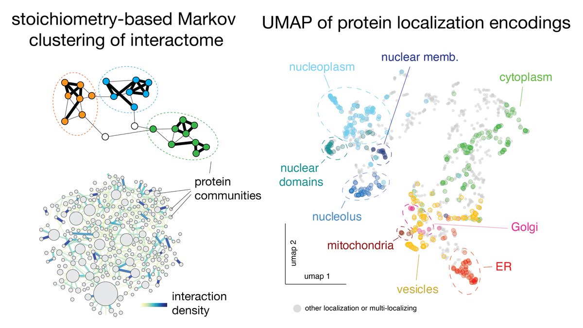 (4/8) By encoding localization and interaction patterns for each protein, we applied unsupervised clustering methods to dissect the structure of the human proteome (similar to strategies used in single-cell RNASeq analysis)