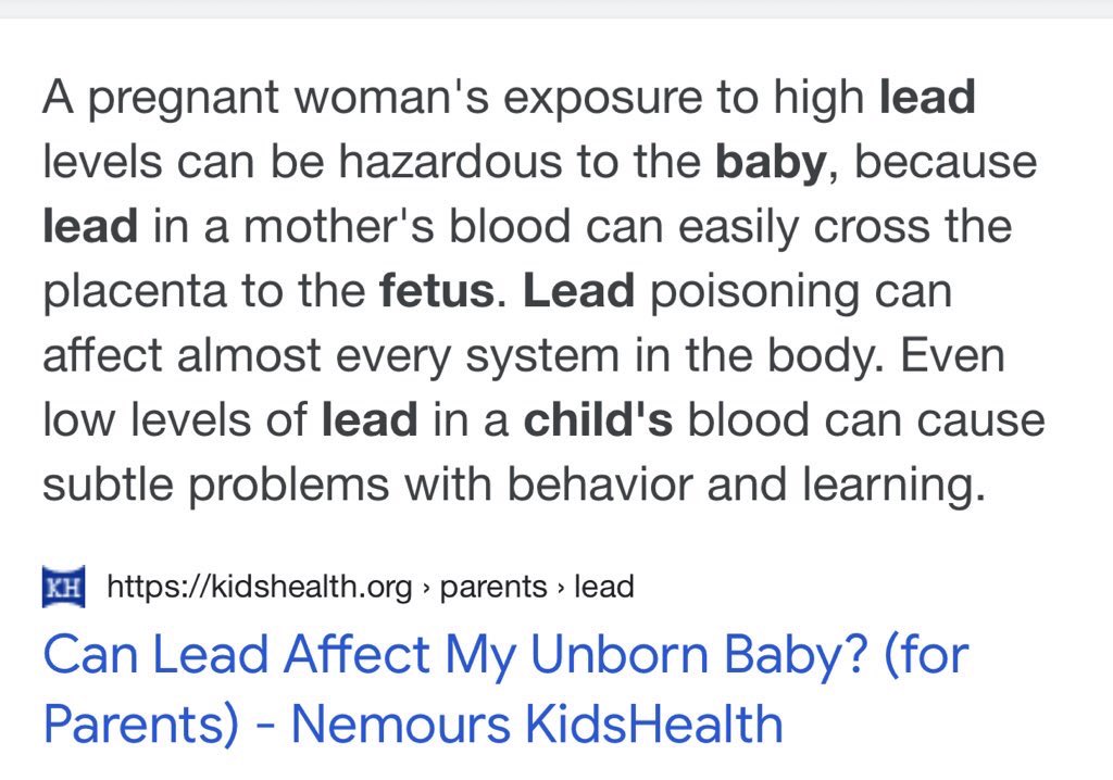 Lead is very harmful to babies. It can cross the placenta and affect the baby resulting in what is called lead poisoning.