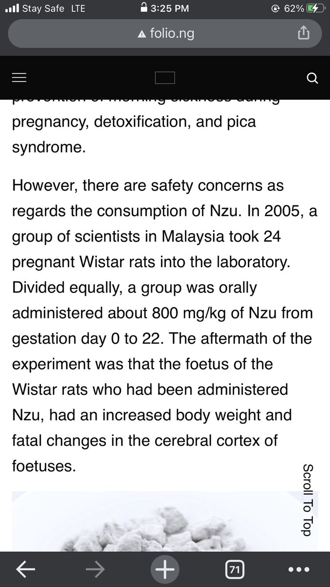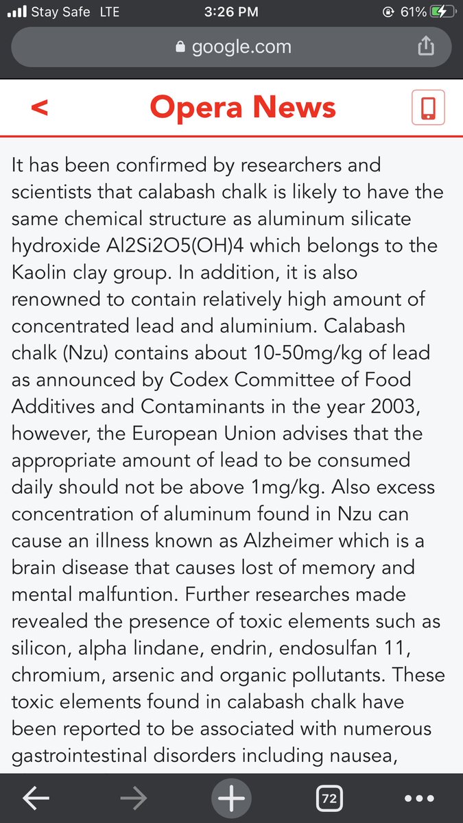 Nzu contains toxic elements and high amount of lead and aluminum which is higher than what is regarded healthy.