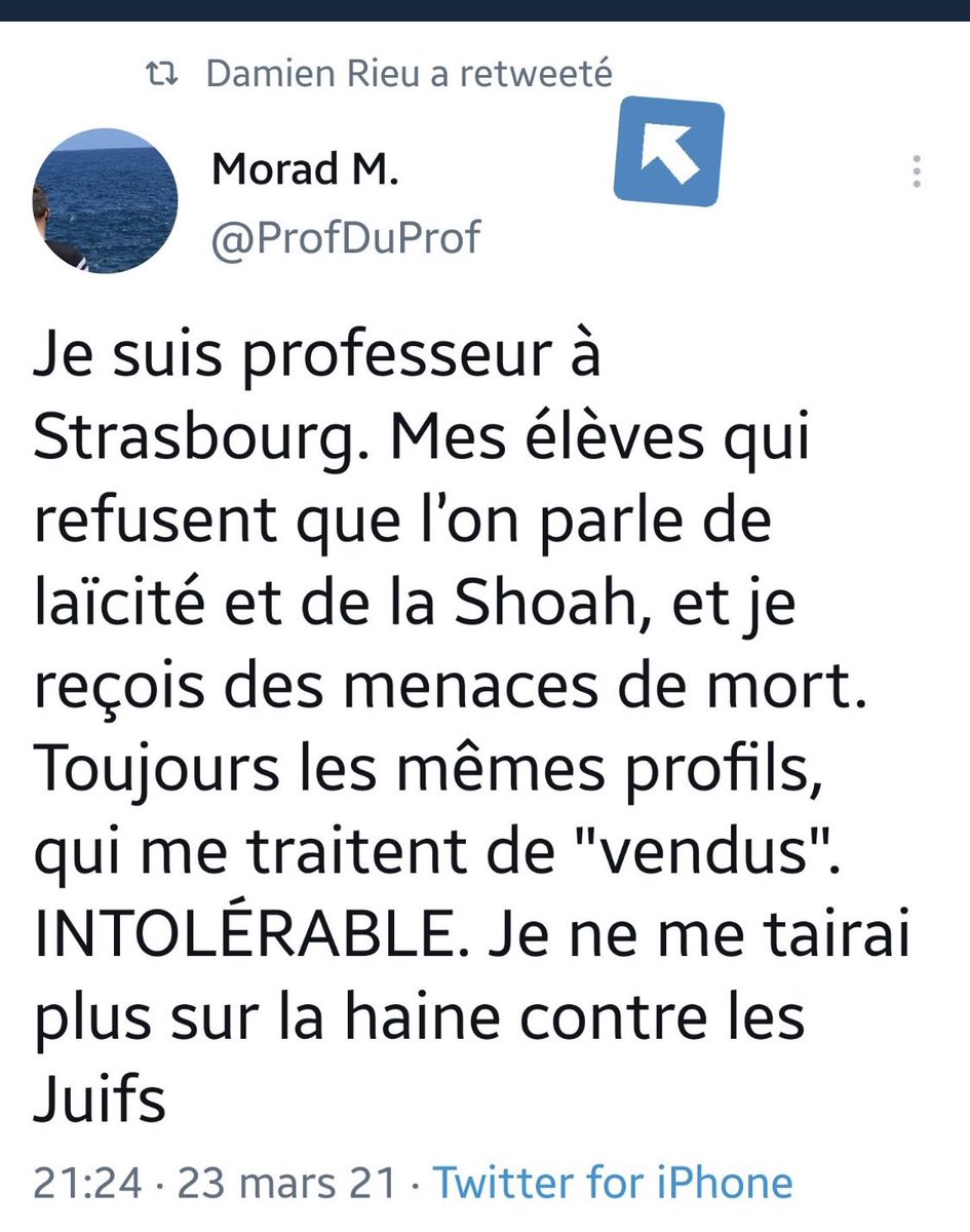 PS : dans les réponses au tweet de "Morad", aucune menace, un peu d’insultes. Majorité de réponses soit pour me dire que je mentais, soit archi drôles. Ma préférée ⬇️