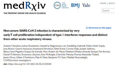 Our data support a protective role for rapid induction of type 1 IFN and CD8 T cell responses. Identifying antigenic determinants of the earliest T cell responses in asymptomatic SARS-CoV-2 infection = priority to inform development of potential universal coronavirus vaccines.