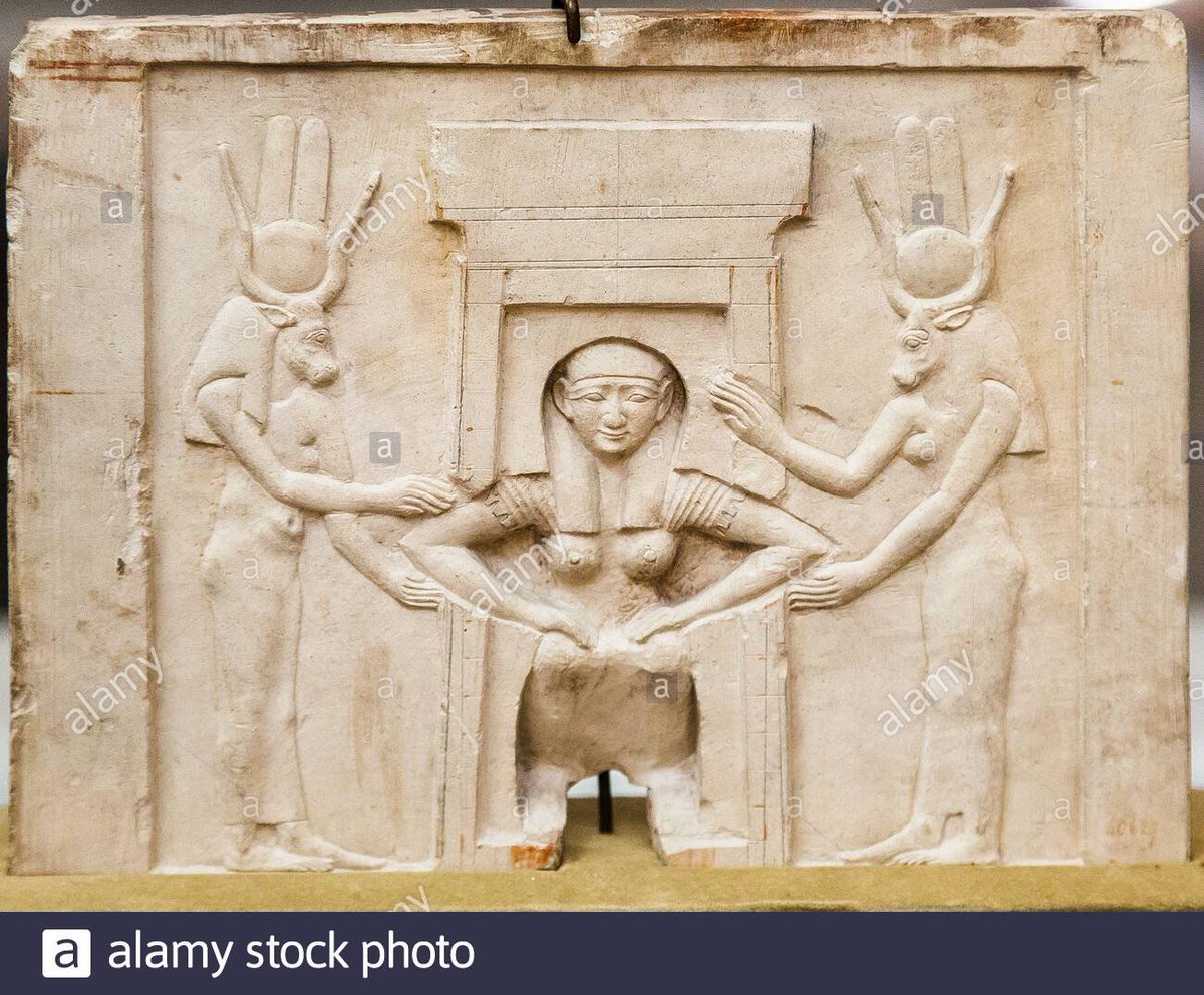 forms of the hieroglyphic symbol for “birth” and are referred to in ancient Egyptian folk sayings, such as “He left me like a woman on the bricks.” Ancient Egyptian pictorial art shows that the two bricks were replaced by a chair with an opening in the middle (like a toilet seat