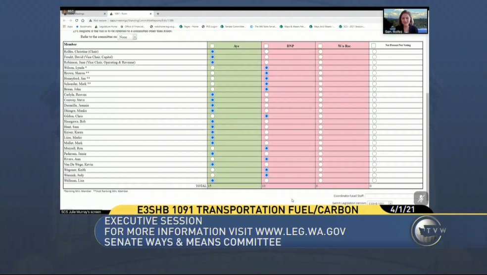 Sen. Van de Wege has an amendment that supports the local clean fuels economy and ensures it benefits (which I think it will in the underlying bill, but hey!). He recognizes it needs a little work and his colleagues agree to support and work with him on it. It passes unanimously.