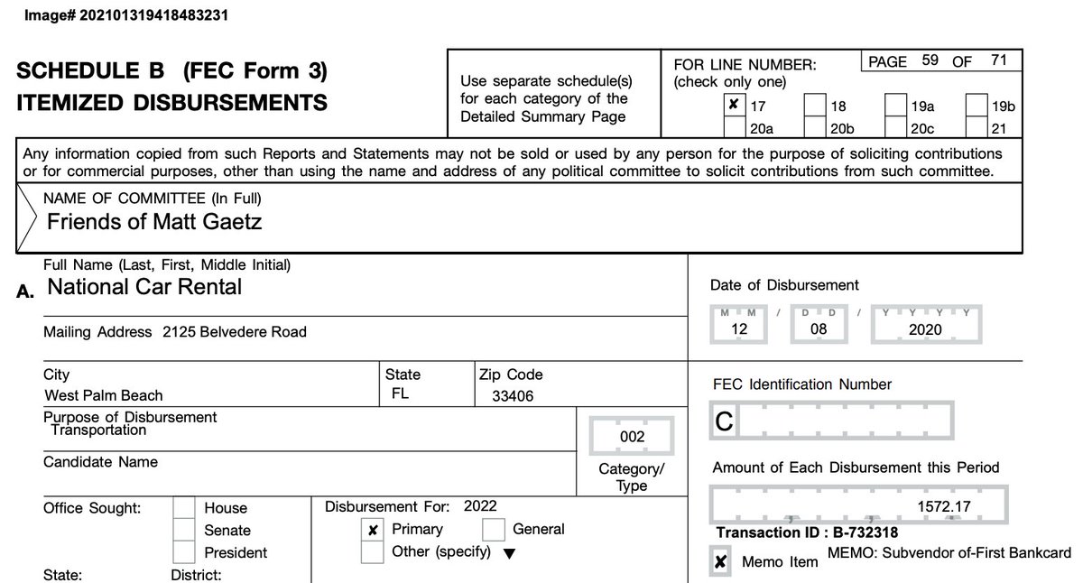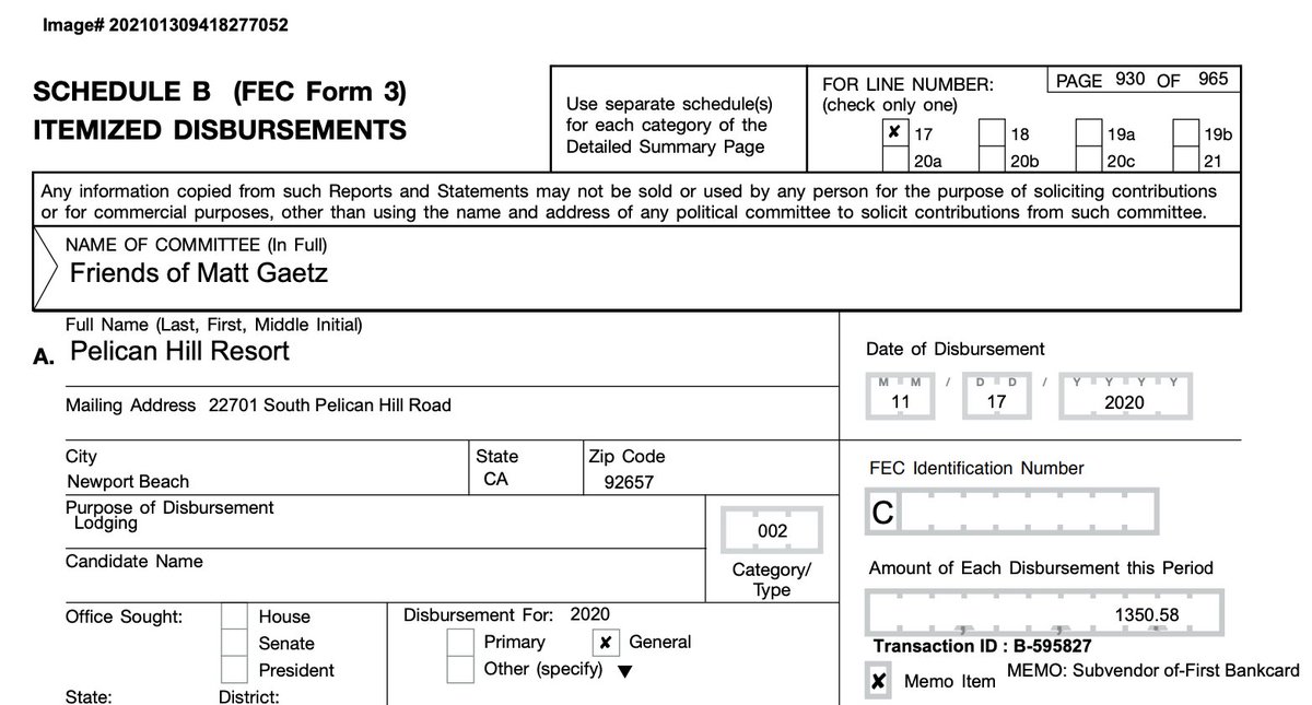 RED FLAG Matt Gaetz campaign filings questionable expenses: Sandestin Golf and Beach Resort $1,000 for "lodging"--exactly $1,000? It's not impossible, but round numbers like this for travel expenses are always a big red flag when analyzing FEC reports.
