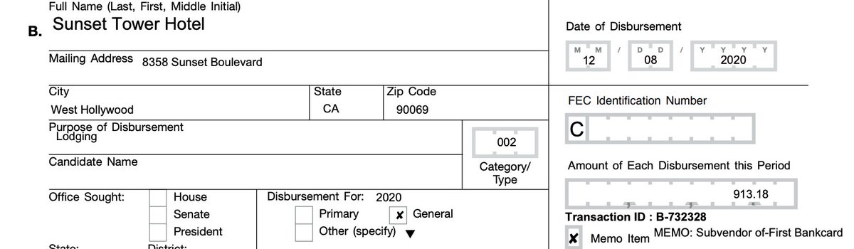 12/8/2020 Sunset Tower Hotel West Hollywood, CA $913.18 for "lodging"
