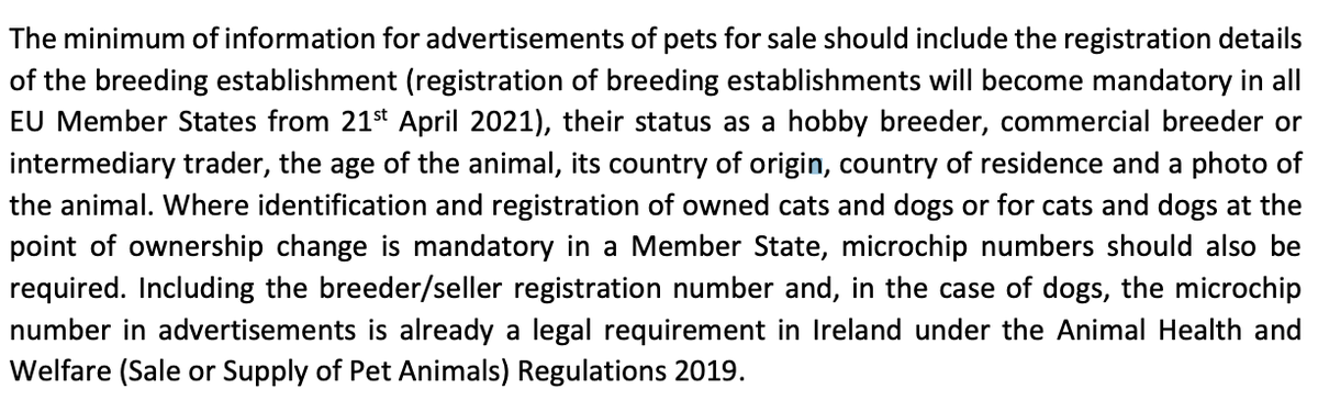 6/ EU Dog & Cat Alliance @EUdogsandcats says there should be minimum requirements for information required from online traders in pet adverts, including a broad range of info that I'm pretty sure is quite lacking on pet adverts currently online: