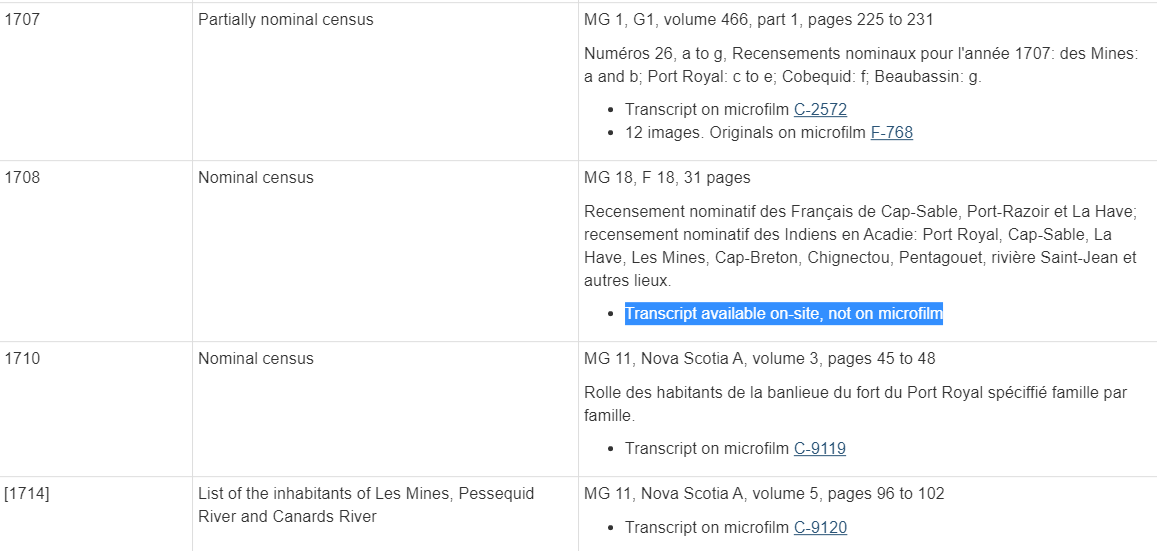 bac-lac.gc.ca/eng/census/Pag… -- this government site which provides a link to every other census other than the French - Mi'kmaw Census of Cap Sable, le Have .. 🤔"Transcript available on-site, not on microfilm" -- Weird Gov of Canada. 😠