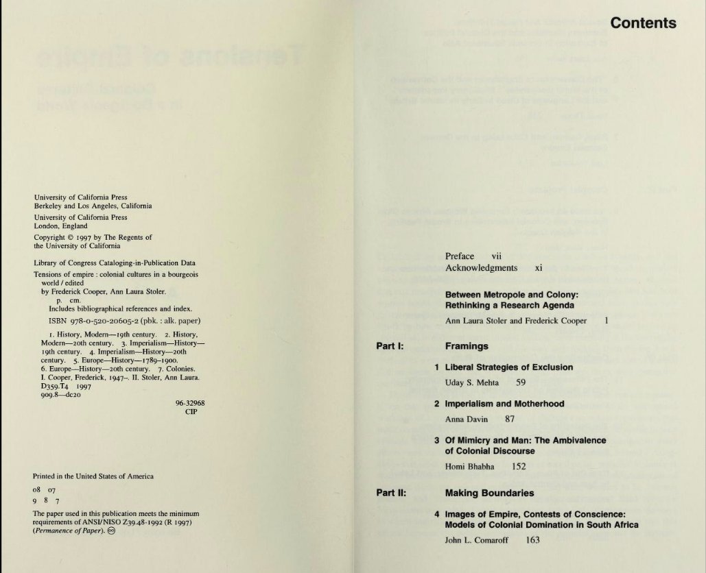 Tensions of empire- colonial cultures in a bourgeois world-Cooper, Frederick, 1947- Stoler, Ann Laura-1997 -- MNC does not hold a monopoly on the word Metis, it is an International phenomena. With many many different definitions.