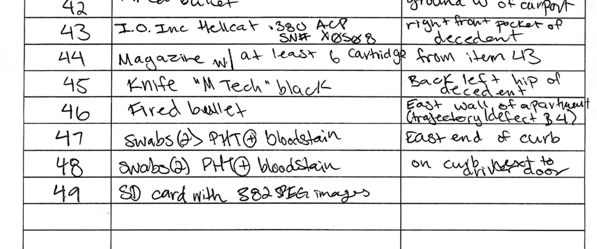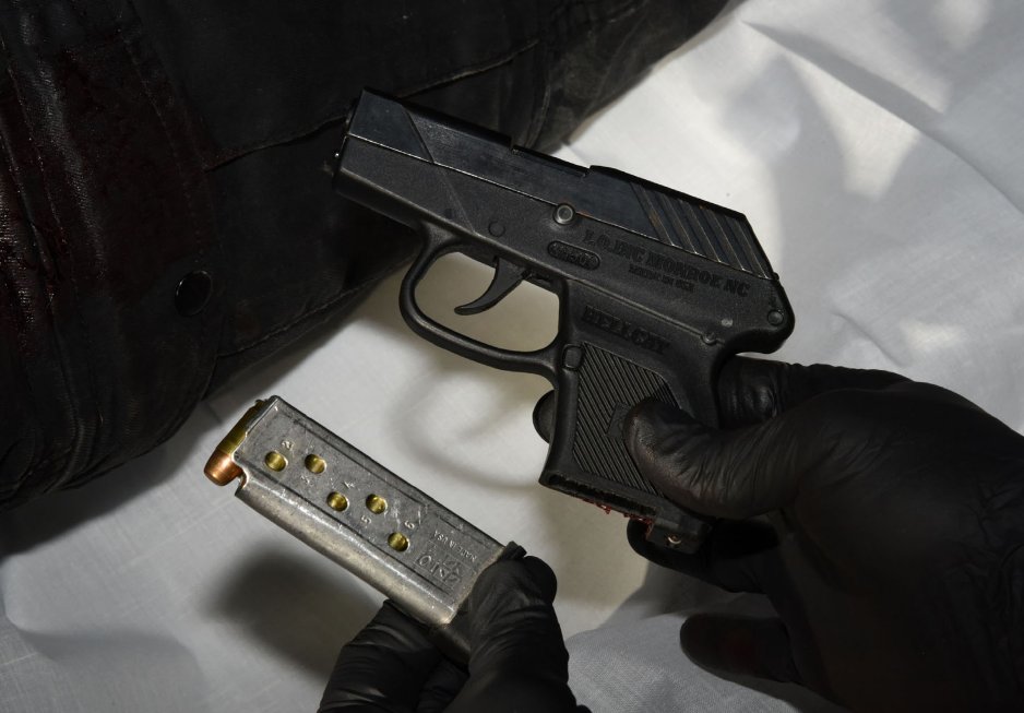 What a picture of a Police Weapon looks like for actual evidence purposes. Note it's open, which we do not get in the MFR pistol picture.