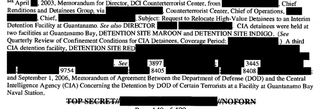 We know from the Senate torture report that the CIA held a small number of its high-value/black-site detainees at Gitmo from September 2003 to April 2004. It held them in two detention sites codenamed MAROON and INDIGO, and there may also have been a third there named RED./3