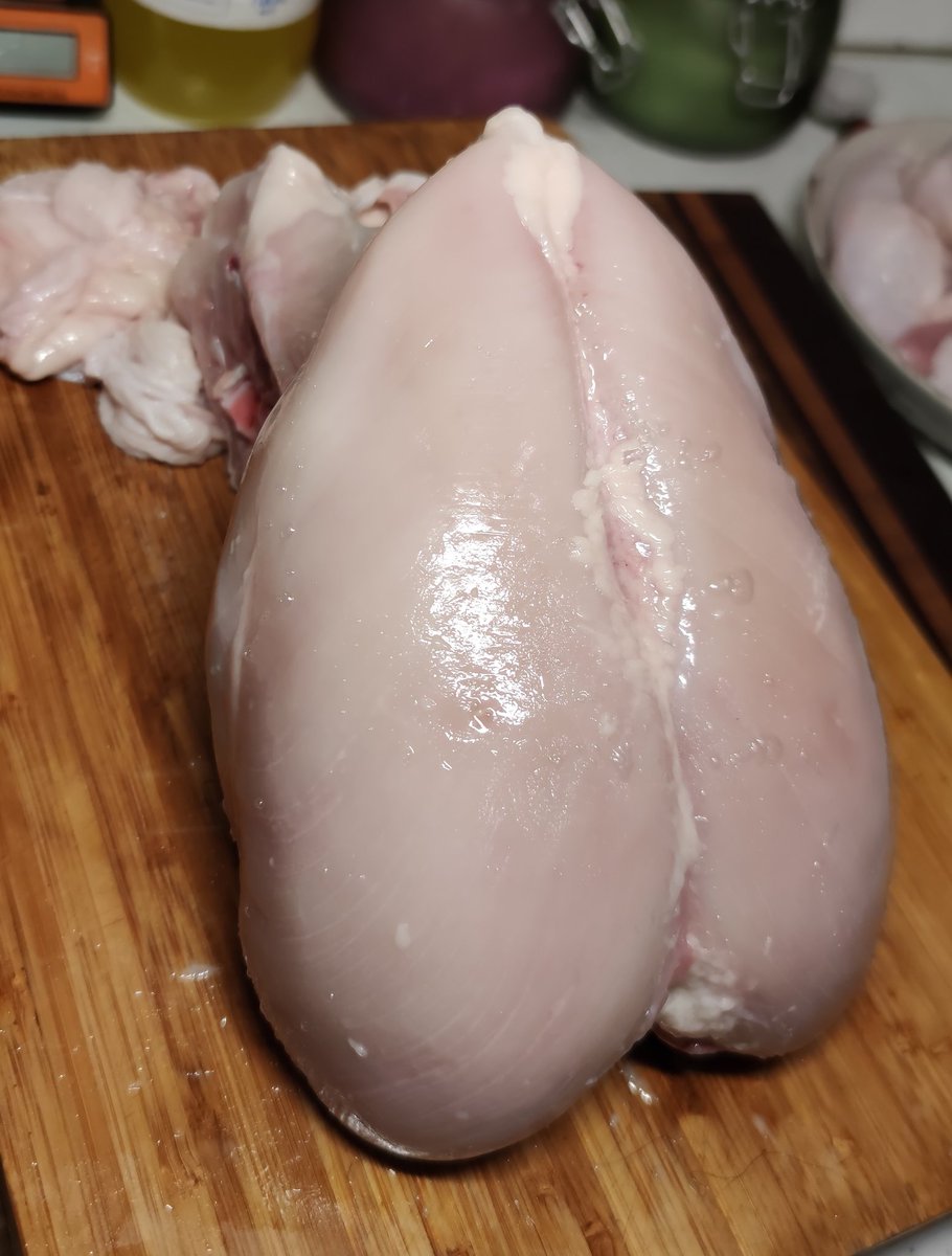 Знающие пожилые люди типа меня знают, что в курице есть мясо белое и серое. Белое не трудится, поэтому вкуса вкуса в нём меньше, чем в натруженном сером мясе в её руках и ногах, но готовится оно быстрее и температур для своего приготовления требует более гуманных.